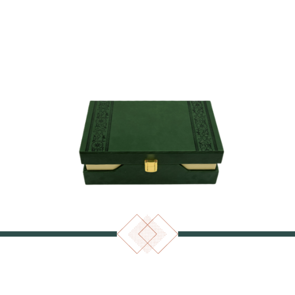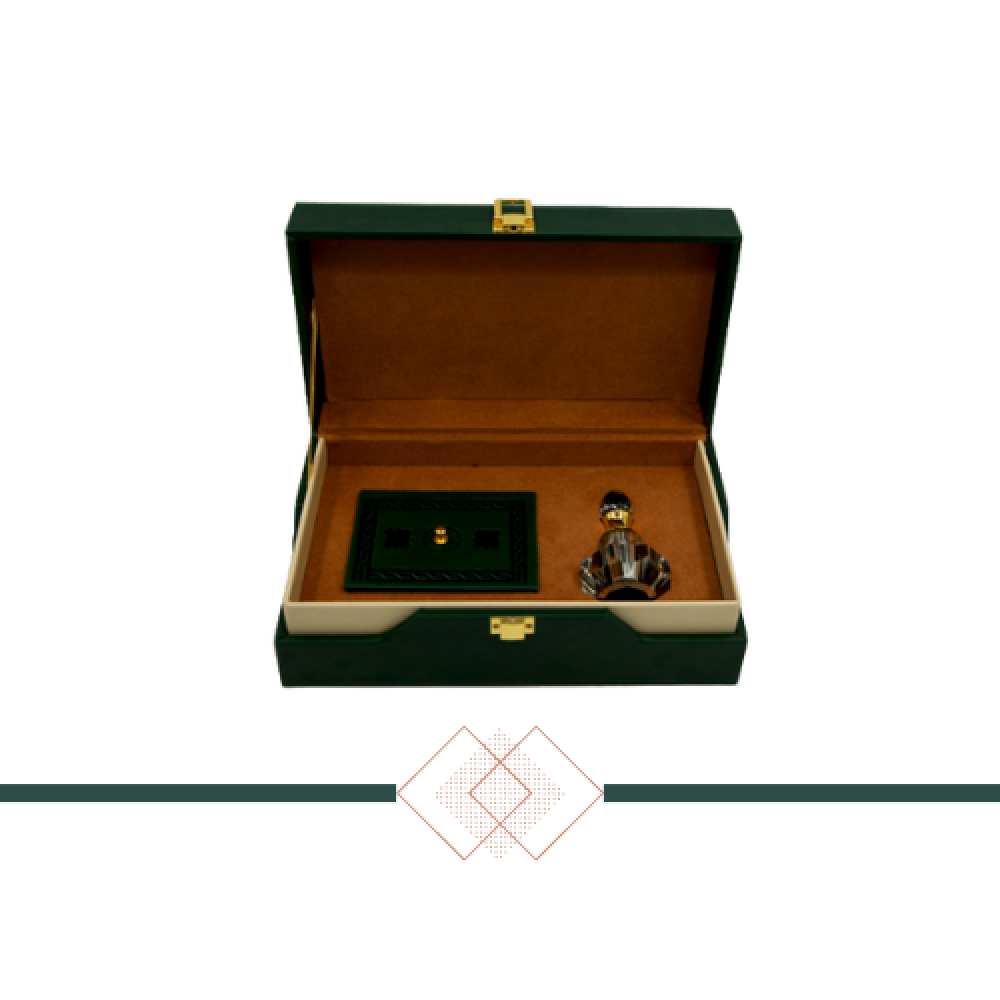 بوكس وصندوق اهداء فاخر (فارغ) من الفوم الفاخر والجلد الأيطالي يحتوي على "ربع توله كرستاله جميله وكمية أوقيه ونصف من العود تقريبا"